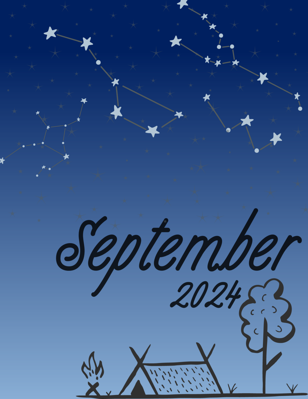 Planner for the month of September 2024. Made for a Big size Happy Planner (8.2x11). Includes space for To Do lists, Notes for the month, fun graphics, and star themed quotes.